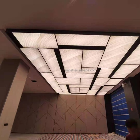 Waterdichte Brandwerende Backlit Marmeren Paneel Verlaagd Spanplafond Kunstmatige Doorschijnende Stenen Vierkant Voor Hotels Glasvezel